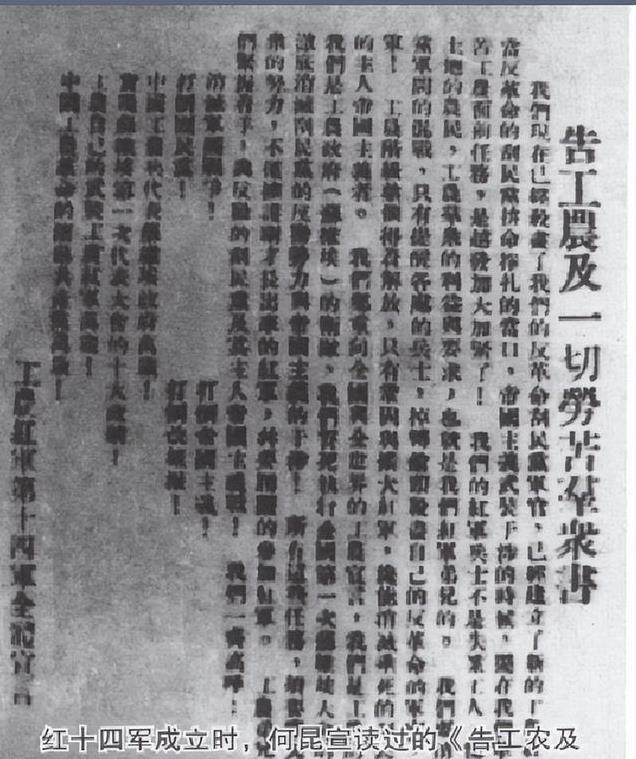 何振新为何昆辩护时提到,何昆此次到武汉的目的并非与共产党接触,而是特意来看望他这个老朋友和同学。经过详细调查,国民党当局得出结论:何昆虽在黄埔军校担任国民党特别党部监察委员,并存在不当行为,但其并未加入共产党。何昆随后获得自由,暂时居住在何振新公馆。在那里,他秘密进行了一些联络活动。出于安全考虑,党组织于1929年将他调往中央机关任职。【何昆受命担任十四军军长】1929年底,随着革命浪潮的迅速高涨,苏北地区的农民和工人组建的武装力量已经扩展到几千人。这支队伍不仅有效遏制了国民党反动势力的扩张,也为未来的革命武装斗争奠定了坚实的基础。为加强武装斗争的组织领导,中共中央和中央军委决定在苏北地区建立一支新的红军部队。这支被命名为中国工农红军第十四军的队伍,其活动范围主要集中在通海如泰一带,涵盖了当时的海门、南通、如皋、泰兴等八个县。这一决策旨在整合当地革命力量,推动苏北地区的武装斗争向纵深发展。